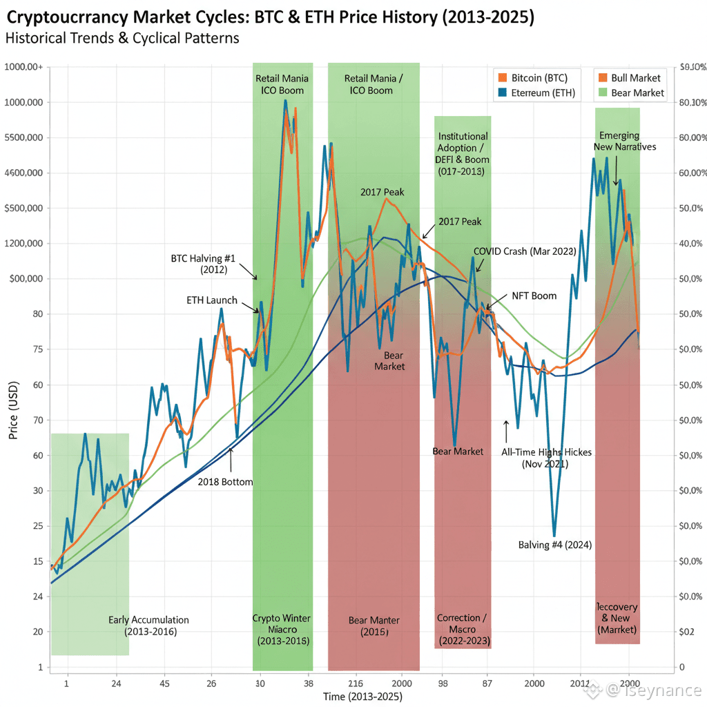 Historical patterns in crypto markets show cycles of sharp corrections followed by recoveries, often linked to broader economic cycles and technological milestones.