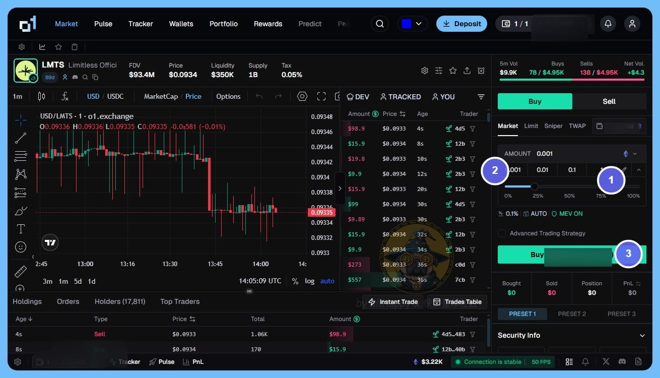 Купить: после перехода на страницу → нажмите кнопку карандаша → установите количество быстрых сделок по мере необходимости → нажмите кнопку быстрого доступа → нажмите Buy xx LMTS