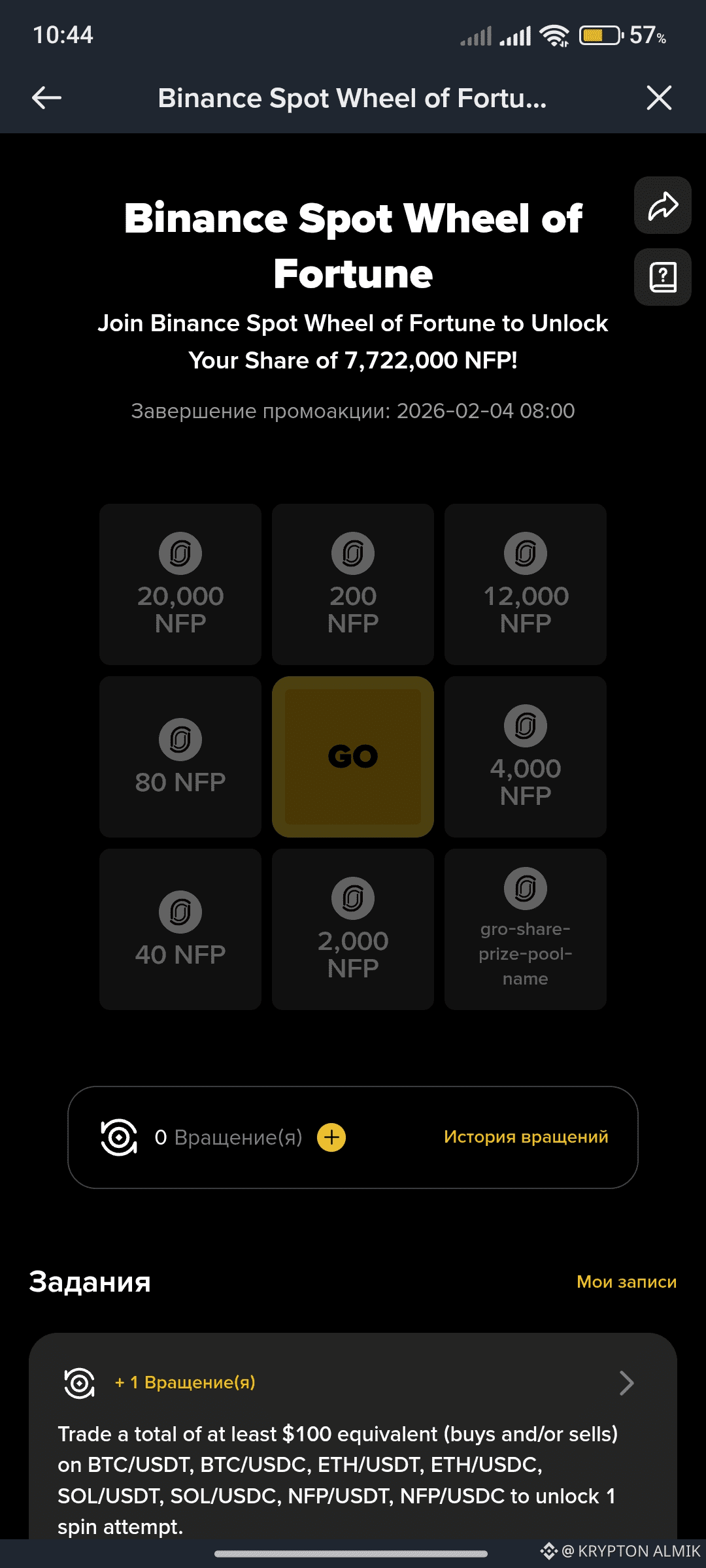Всё, что нужно — сделать пару сделок и крутануть колесо. Я уже в деле, забирай свою попытку, пока не поздно!