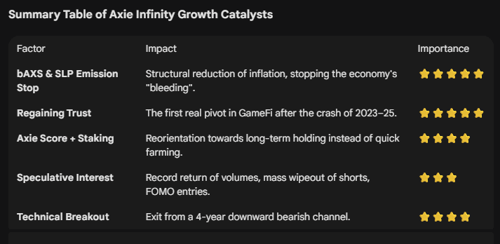 Это фундаментальный сдвиг парадигмы: от "заработай и убеги" к "удерживай, играй и получай больше." Для долгосрочной цены токена $AXS это крайне положительный фактор, стимулирующий стекинг и удержание, подобно тому, как стекинг $BNB или $SOL поддерживает их экосистемы.