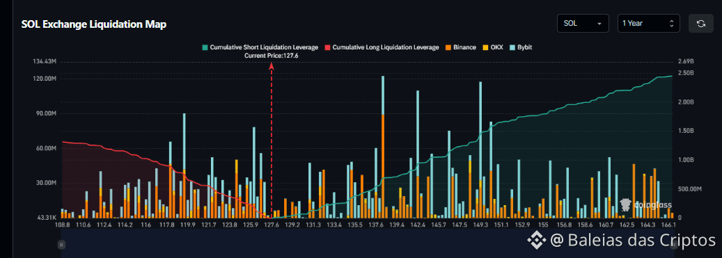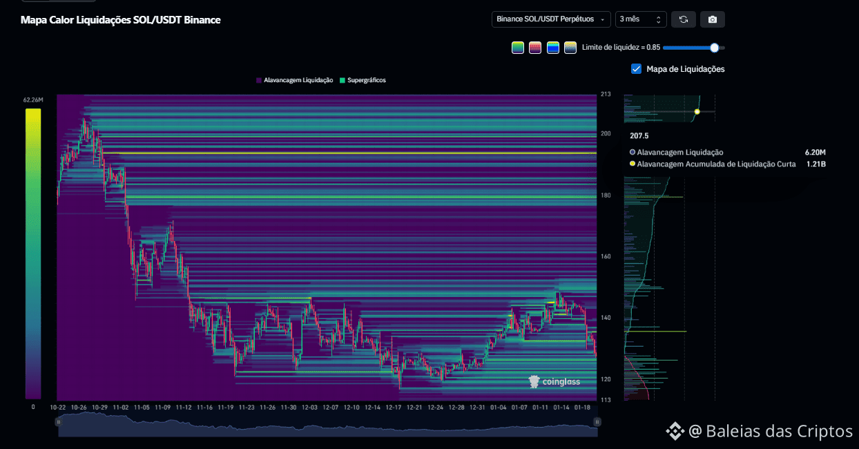 Os mapas de liquidação (Coinglass) revelam zonas densas acima do preço atual. Isso significa uma coisa: