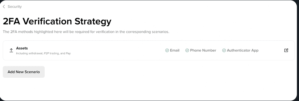 Стратегия проверки 2FA позволяет вам решать, какие проверки безопасности требуются для различных действий в вашей учетной записи Binance.