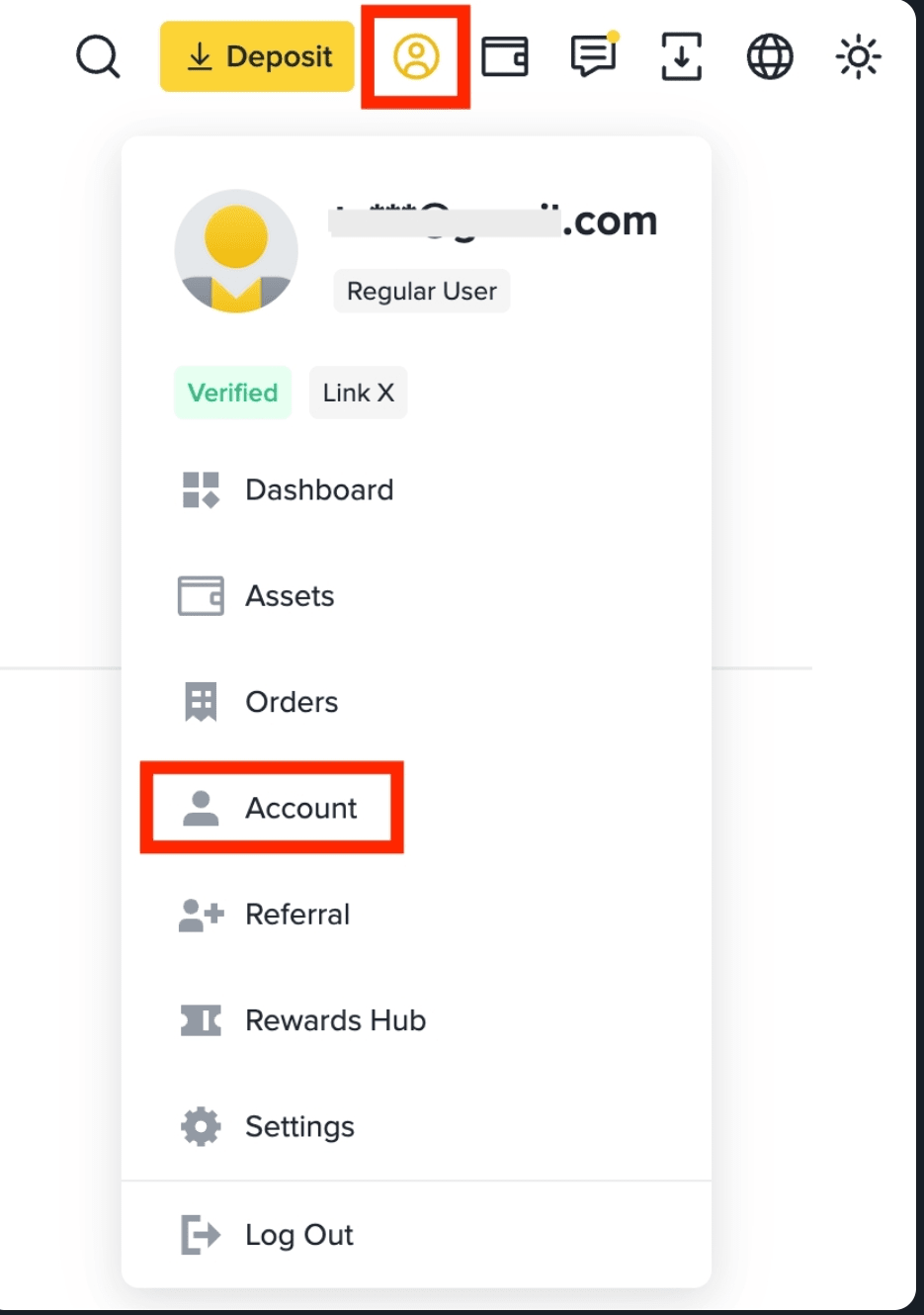 Войдите в свою учетную запись Binance и перейдите в безопасность в настройках учетной записи.