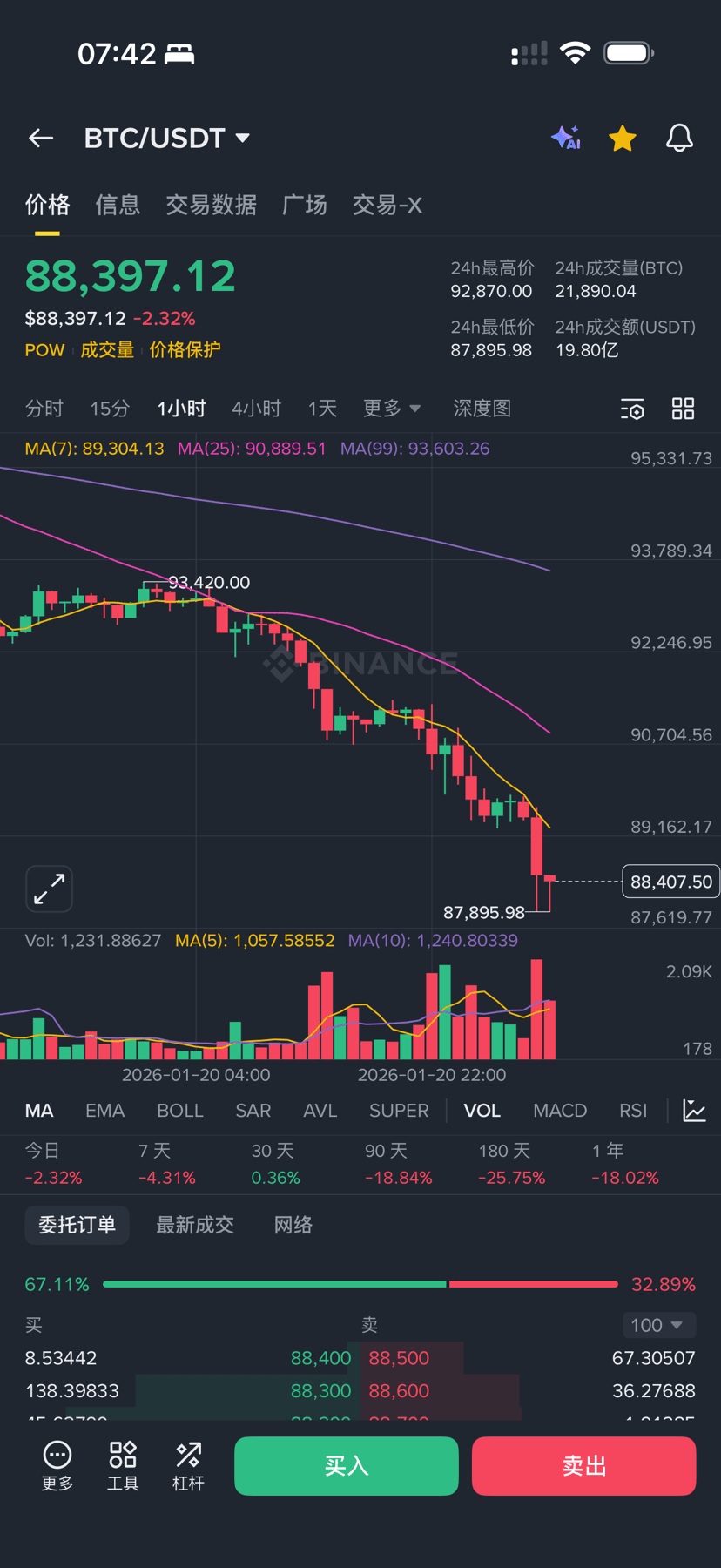 Вчера биткойн и все криптовалюты коллективно упали, у кролика, кроме BNB➕ регулярных инвестиций в BTC, практически нет позиций.