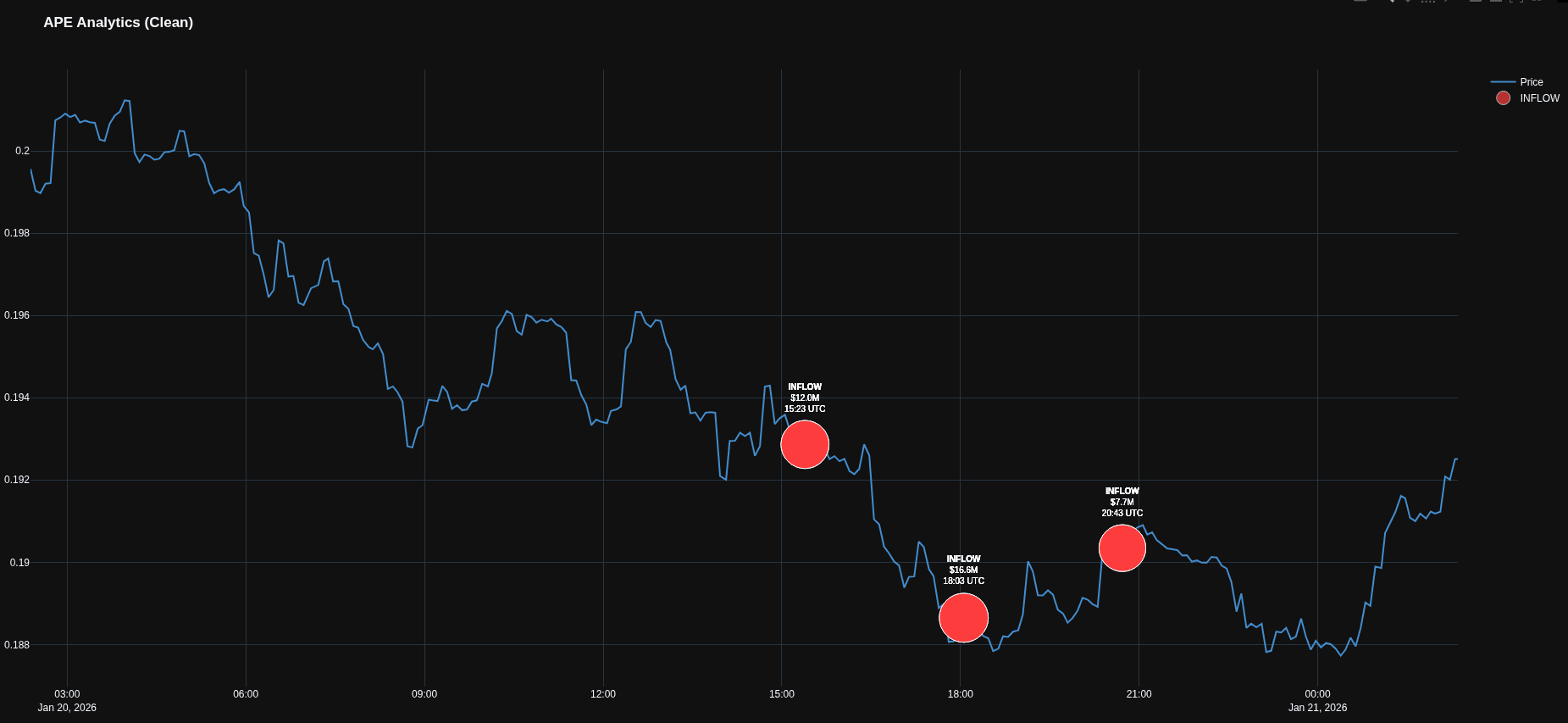 Вывод: Это не похоже на случайность. Кто-то активно "заводит" токены на биржу. Обычно массовый Inflow свидетельствует о желании продать (фиксация прибыли) или о подготовке к большому маркет-мейкингу. Ожидайте повышенной волатильности по APE.