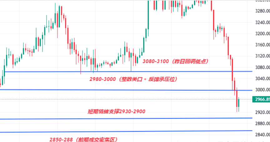 Если удастся удержаться в диапазоне 2920-2950 долларов, сопротивление при восстановлении ожидается на уровнях 3000 долларов и 3050 долларов, но общий тренд падения будет сдерживать пространство для восстановления; если поддержка будет потеряна, последует дальнейшее снижение до 2800 долларов. В операциях, пока цена не сможет удержаться выше 3000 долларов, рекомендуется сохранять медвежью позицию.