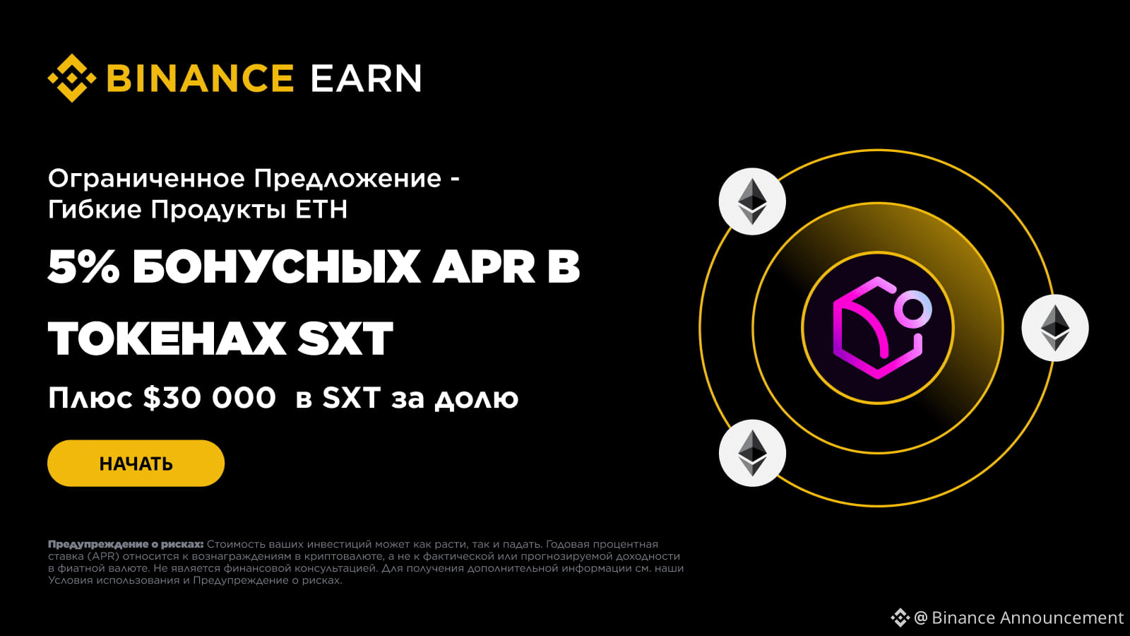 Binance Earn рад объявить о начале акции для Simple Earn (ETH) с гибкими условиями и бонусной доходностью в SXT!