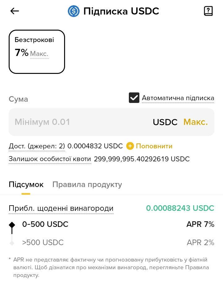 Выбираете "Зарабатывать APR в ...", появляется такое меню: