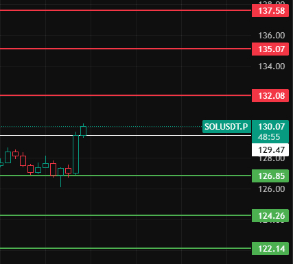 如果夜间跌破129上方,那这波只是1-2小时级别有力度的反弹而已,再次回踩下方支撑位留意126-124-122这几个位置附近!#solana