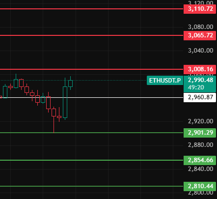 如果夜间跌破2960这个位置,那这波1-2小时级别反弹失败,再次回踩下方支撑位留意2901-2855-2810这几个位置附近!#ETH走势分析