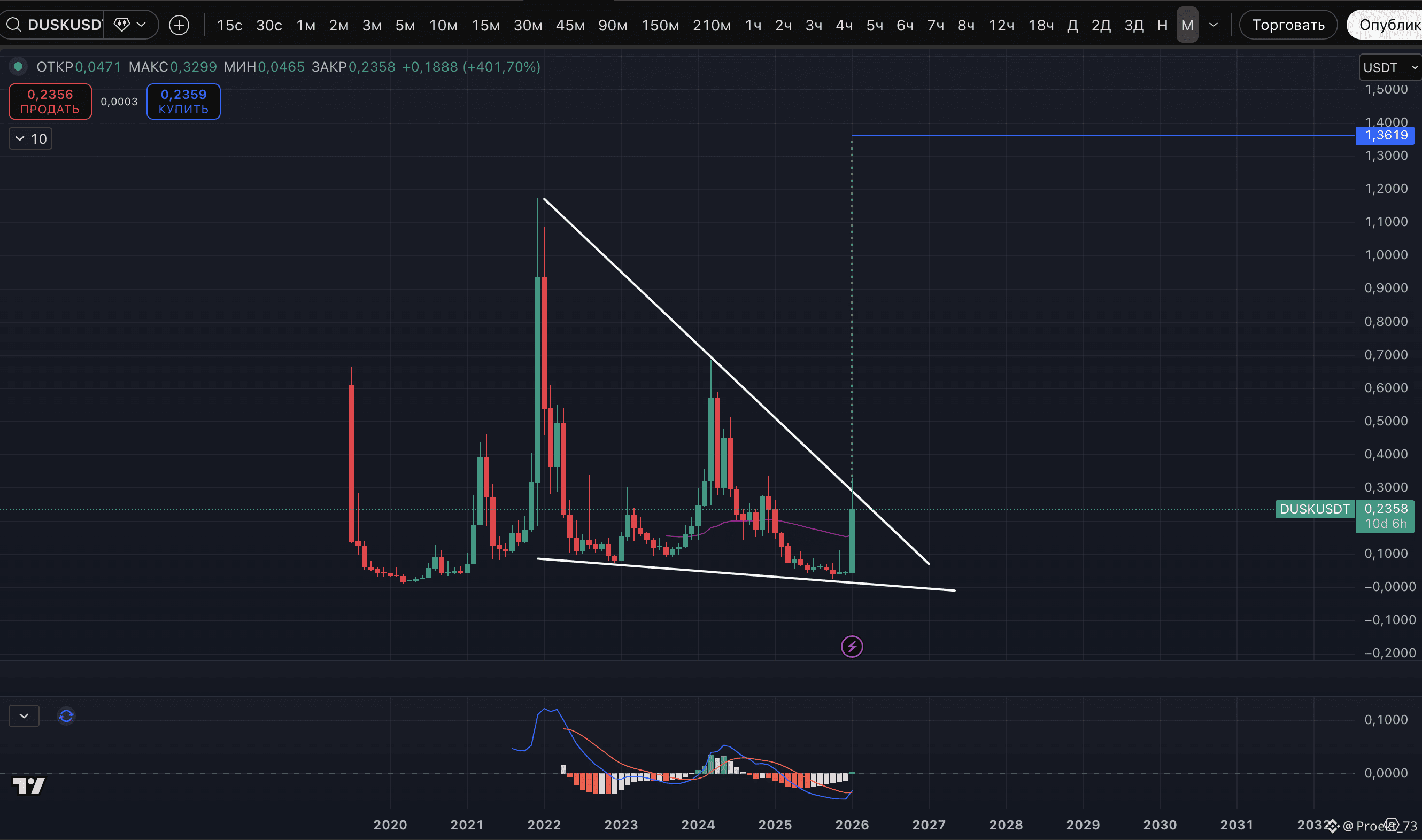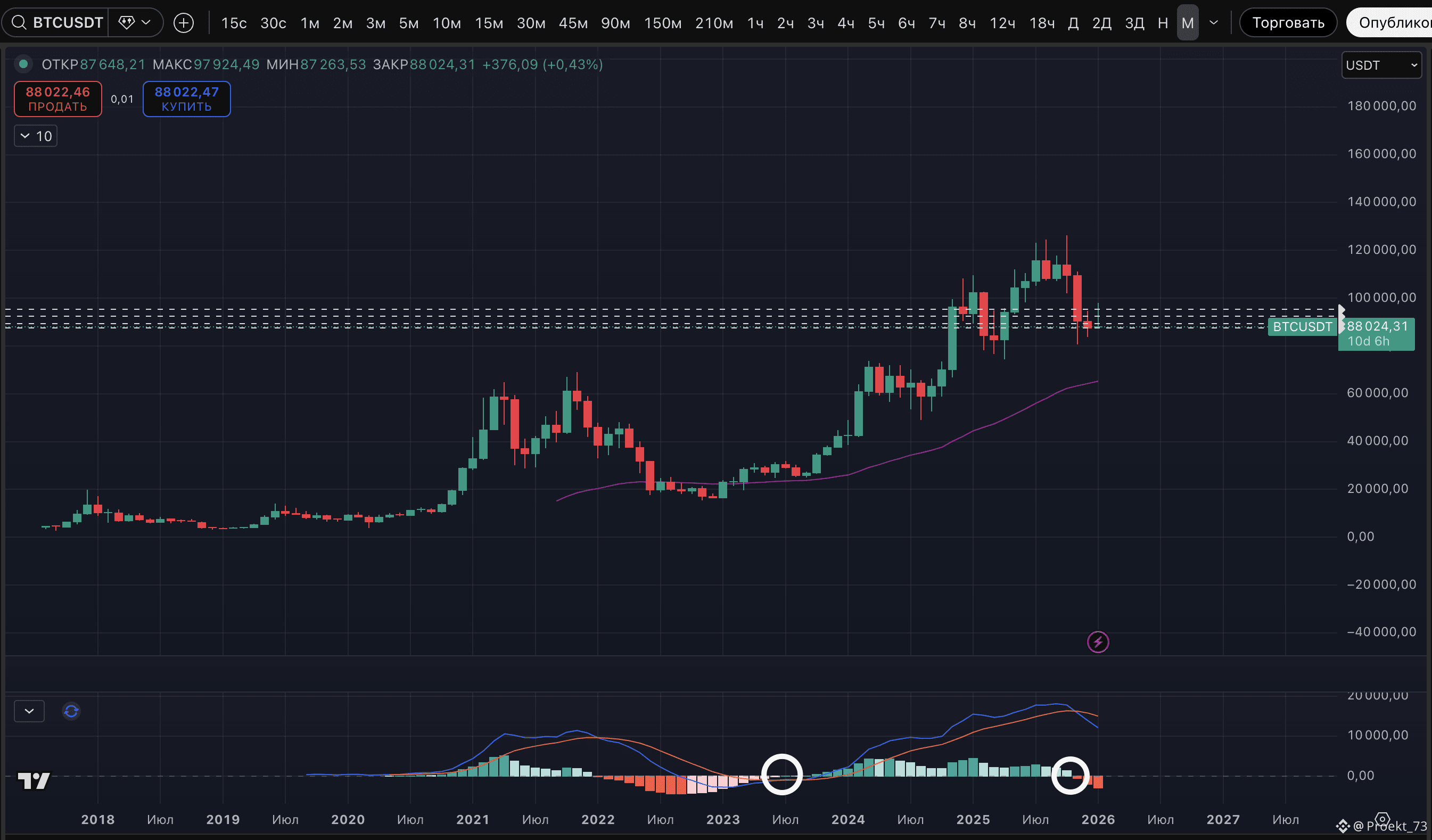 Если сегодня на крипторынке активы, которые за последние месяцы показало бычий сигнал по MACD на месячном ТФ?