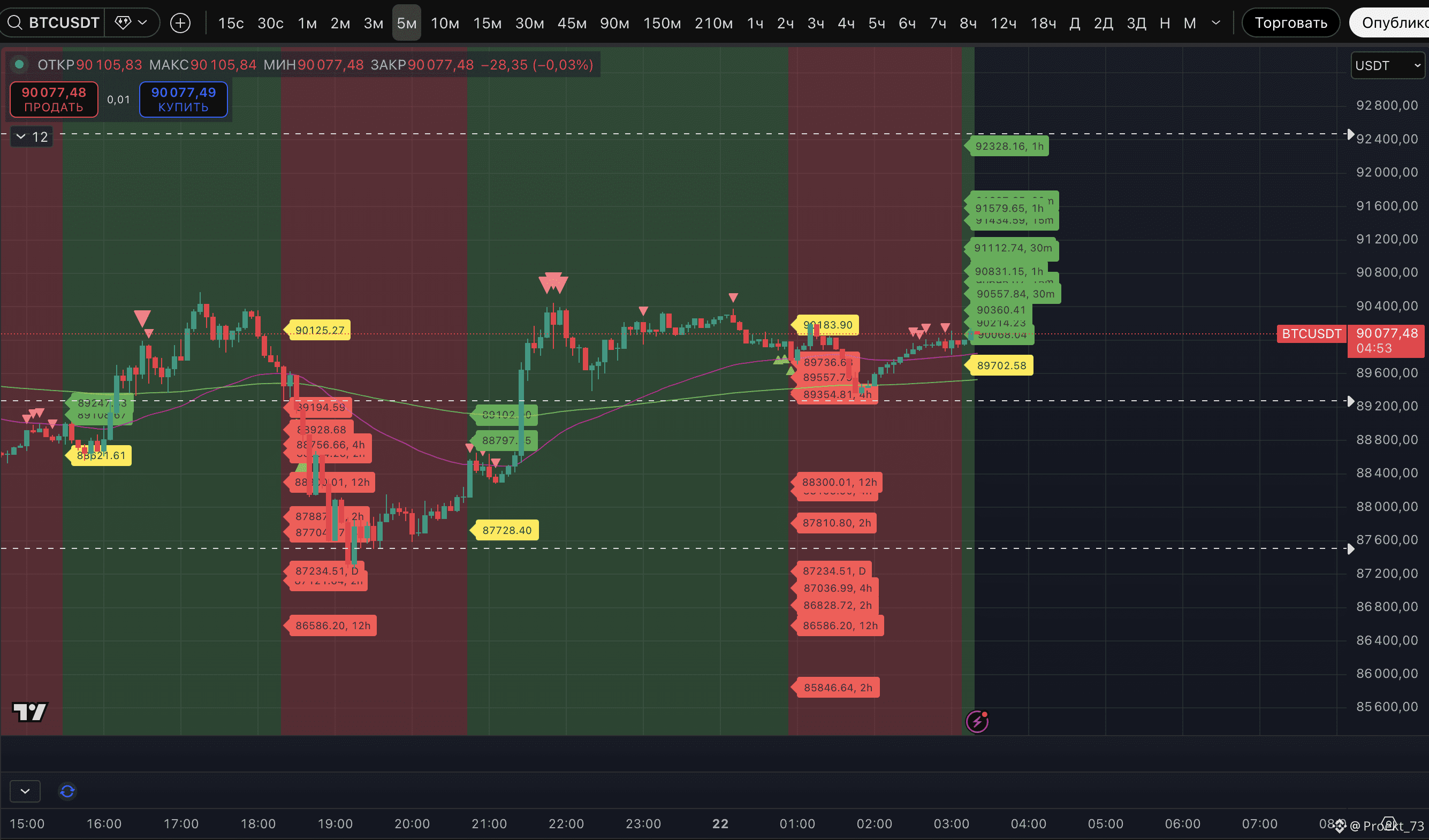 BTC продолжает неплохо держаться в районе 90 000$ и сформировал плотность целей до 91 600$.