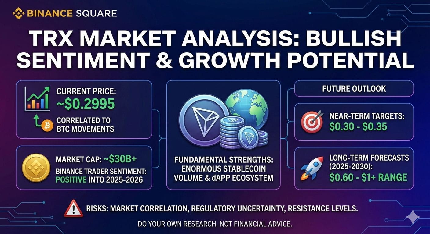 $TRX current market price (approx): ~$0.2995, moving with overall crypto trends.