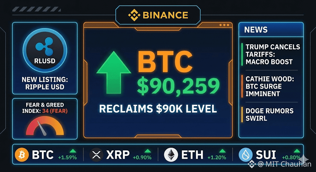 Bitcoin (BTC): The King Coin has successfully reclaimed the psychological $90,000 mark, currently trading at $90,259 (+1.07%). Bulls are fighting to turn this level into support.