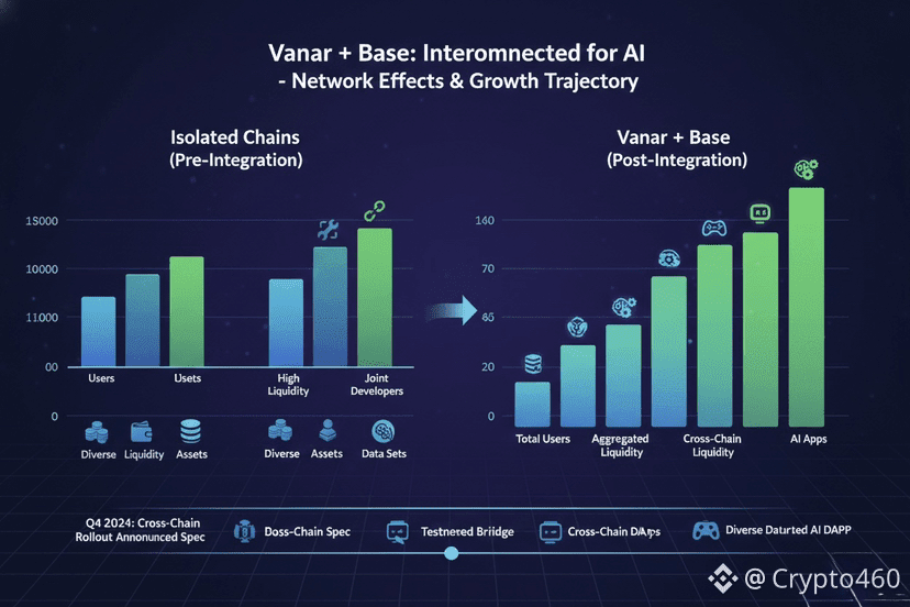 Exponential growth here refers to network effects. Each chain strengthens the other. Developers building on Base gain access to Vanar’s AI-optimized environment without abandoning their Base roots. Developers building on Vanar gain immediate access to Base’s capital and users. The combined utility is greater than the sum of its parts. AI projects are no longer forced to choose one ecosystem. They can leverage both.
