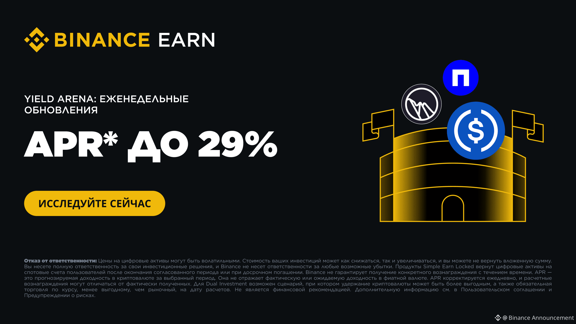 Вознаграждения по годовой процентной доходности (APR) распределяются за счет собственных средств Binance и определяются на основании оценки текущих рыночных условий. Эта акция никак не связана с эмитентом USDT/USDC.