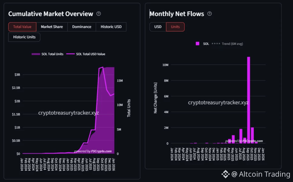 Еще один показатель: компании прекратили покупать SOL в течение двух месяцев. Совокупный объем монет, удерживаемых DAT, остановился на отметке 17,7 млн.