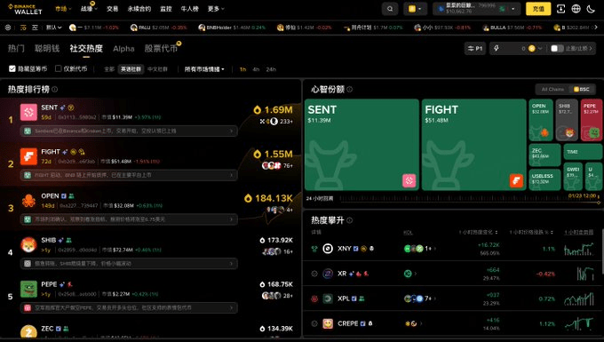 Путь функций: веб-версия кошелька Binance → Рынок → Социальная популярность