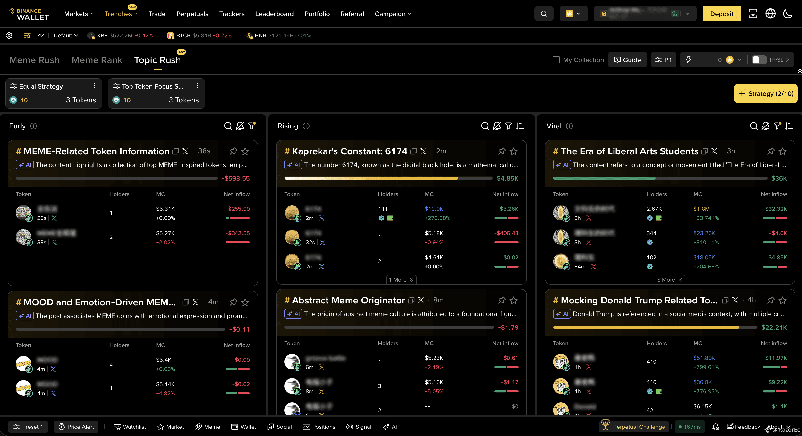 Si Social Hype responde al “qué se está hablando”, Topic Rush responde al “por qué importa”. Esta función agrupa tokens y proyectos alrededor de temas en tendencia, ayudando a entender qué narrativas están captando capital y atención.