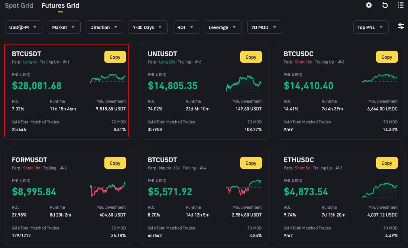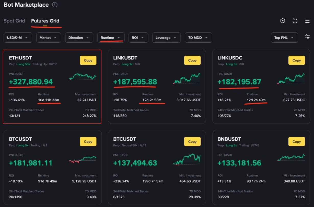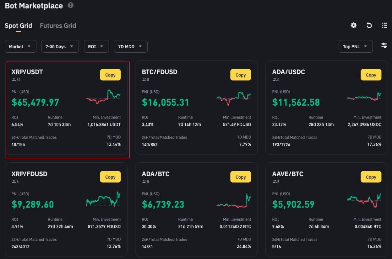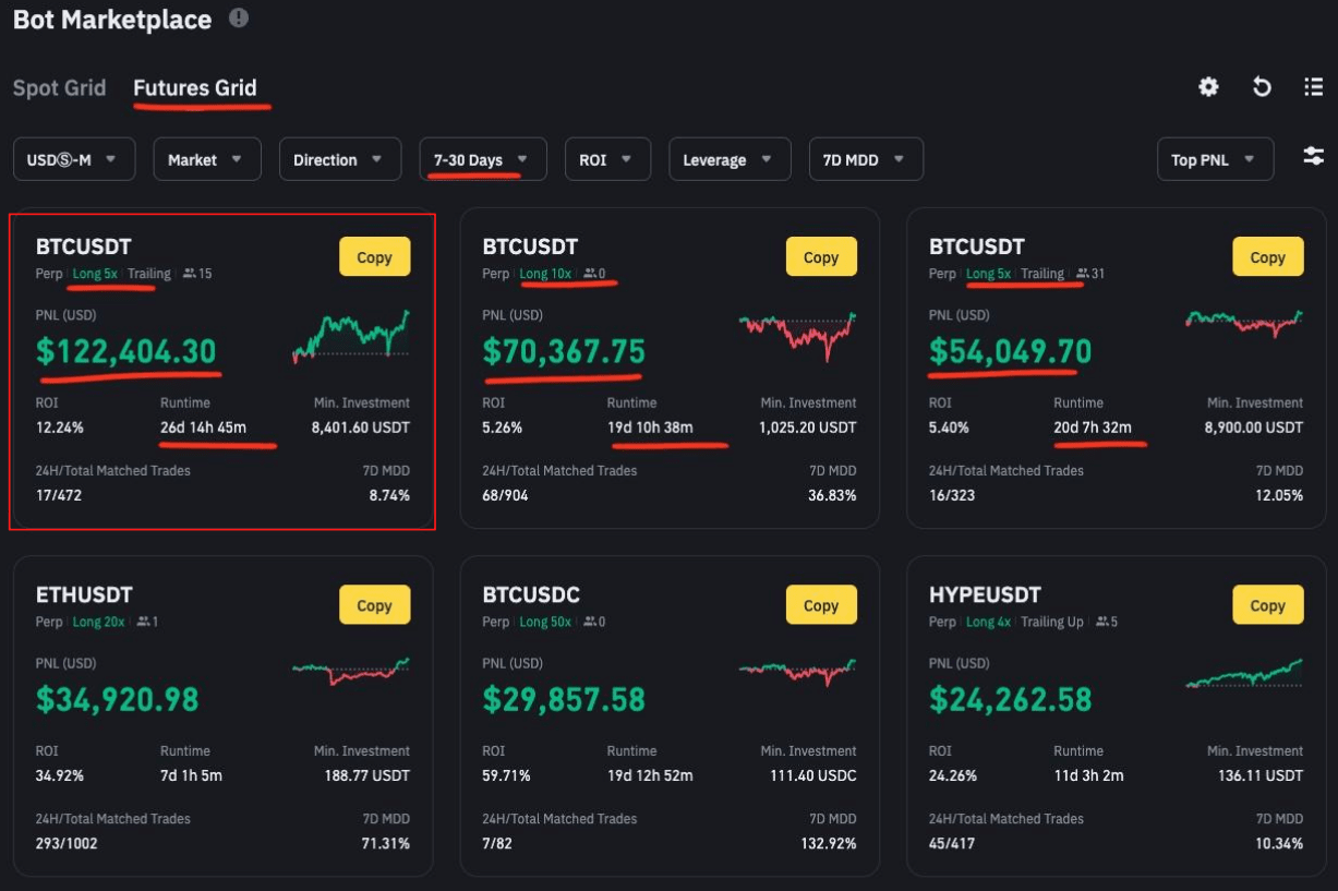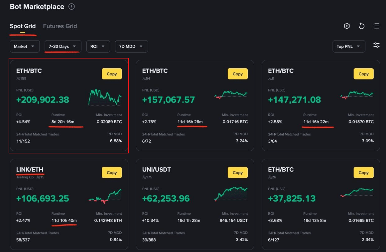 В марте 2025 года отличился Spot Grid бот на паре BTC/FDUSD c PNL + $210294 и ROI +1.31% за два дня
