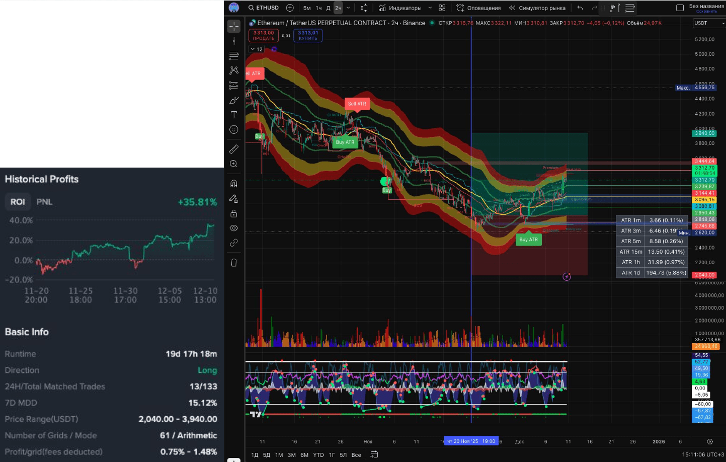 Здесь бот за 21 день заработал PNL + $24811 и ROI 2,48% (да, небольшая процентная доходность в день, но вероятно устраивающая создателя бота))
