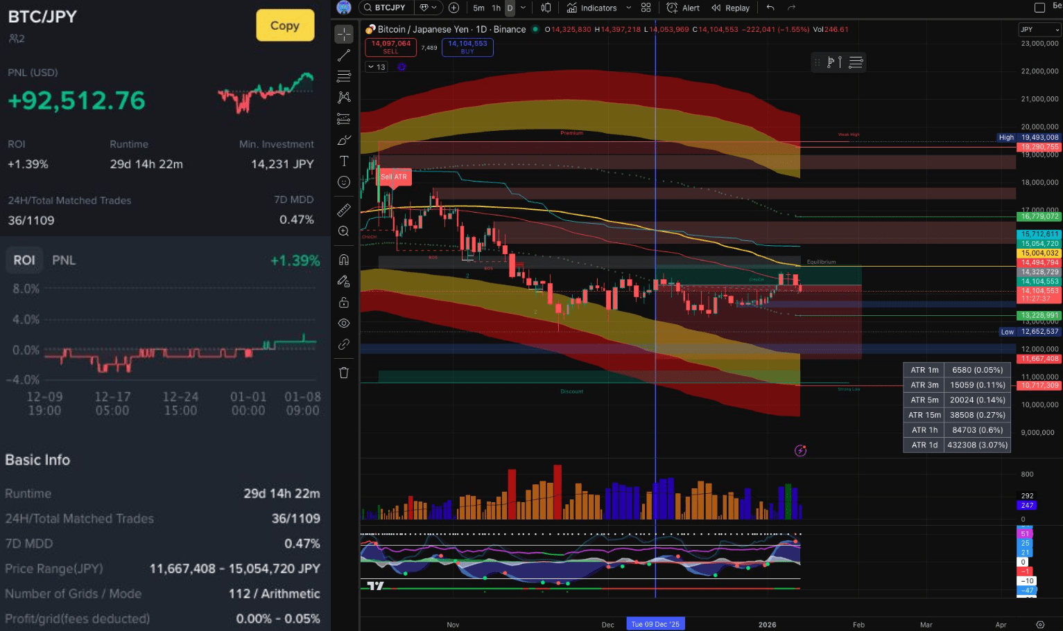 В декабре снова на первом месте оказался Spot Grid BTC/JPY с PNL + $92512 и ROI +1,39% за 29 дней