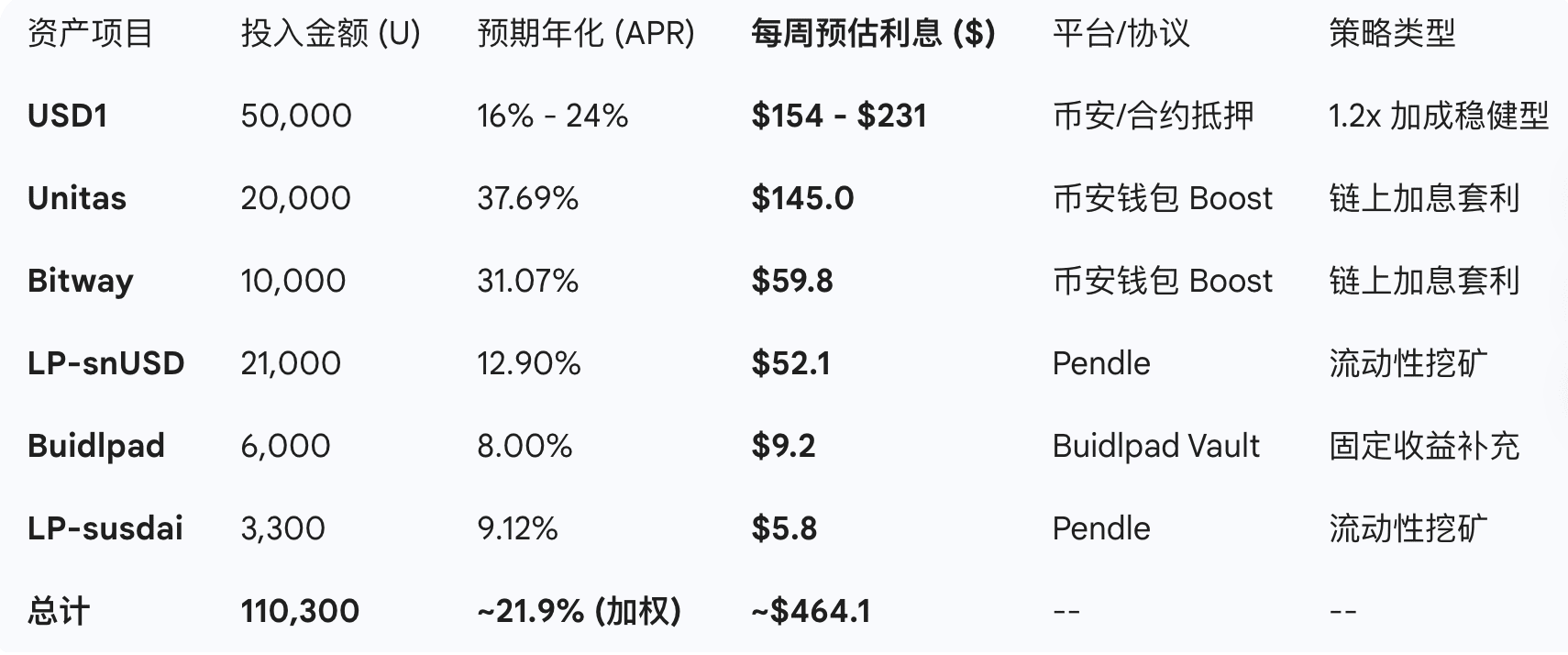Регулярная проверка счетов: каждую понедельник я буду вовремя проверять ситуацию с поступлением аирдропов (например, 2 февраля первая выплата USD1 бонуса) и соответственно настраивать позиции в зависимости от реальной годовой ставки каждого пула.