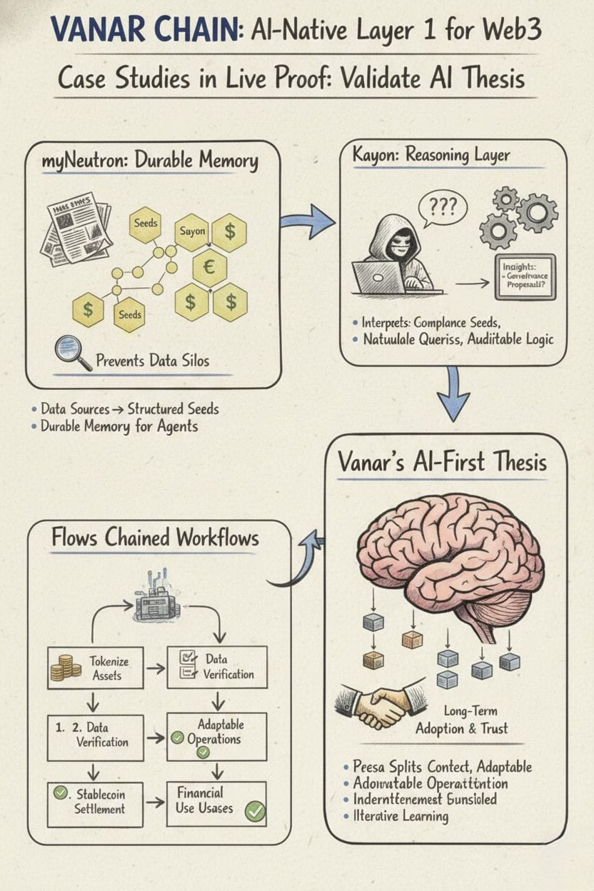 Reflecting on these case studies brings clarity to Vanar’s approach. myNeutron lays the memory groundwork. Kayon adds reasoning depth. Flows ties it into practical applications. Together they embody the AI-first thesis. I have watched the chain’s infrastructure support this without strain. Transactions process efficiently. Usage grows steadily in niches like finance and assets. Market behavior reflects curiosity rather than hype. Teams explore possibilities. This feels sustainable. Looking ahead I see potential in broader adoption. As more projects test these tools understanding deepens. Vanar might shape how chains incorporate intelligence. For now the live proof speaks through these examples. It invites careful observation.