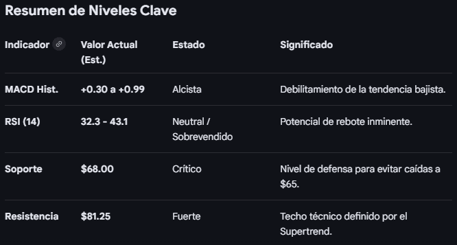 Критическая поддержка ($74.66 - $79.90): хотя текущая цена ниже, аналитики считают зону $74.66 USD ключевым уровнем отмены для любого краткосрочного бычьего сценария.