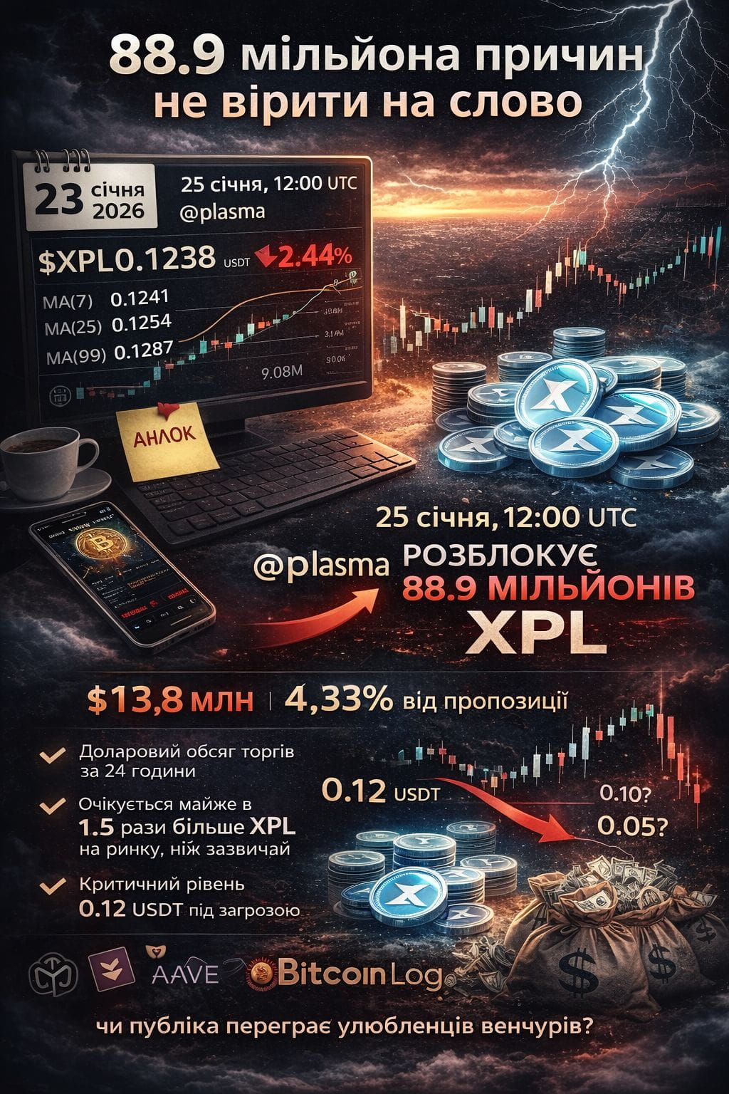 Знаете, что больше всего раздражает в криптосообществе? Когда все делают вид, что все в порядке, хотя цифры кричат о совсем другом. Сегодня 23 января 2026 года, я сижу перед экраном, смотрю на $XPL с ценой 0.1238 USDT (-2.44%), и понимаю – через два дня произойдет то, о чем многие предпочитают молчать. Анлок. Тот самый страшный анлок, который может либо подтвердить веру в проект, либо окончательно сломать её.