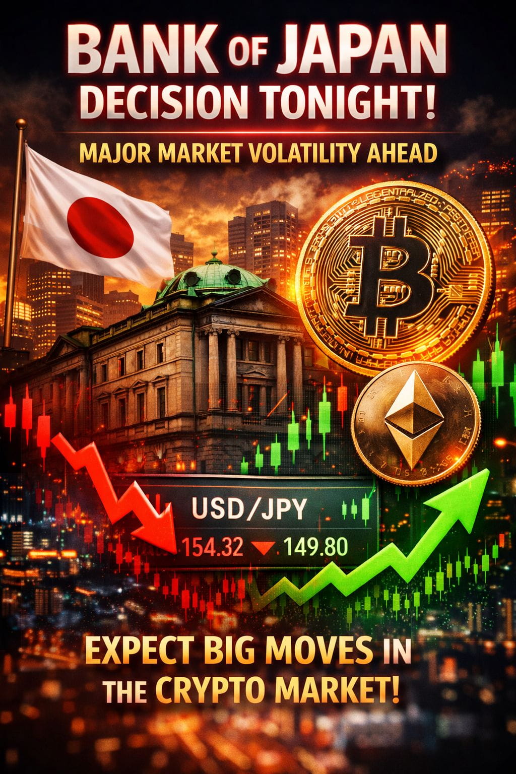 Банк Японии выходит на первый план сегодня вечером, и рынки не остаются тихими, когда Япония принимает меры. Исторически это событие макроуровня, которое быстро меняет настроение — особенно в криптовалюте.