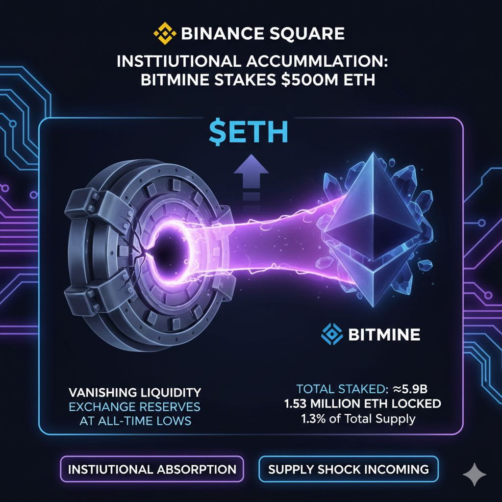 The smart money isn't just buying; they are aggressively removing $ETH from the open market. Recent on-chain data confirms that Bitmine has increased its staking position by another 186,500 ETH (approx. $600M) in the last week alone.