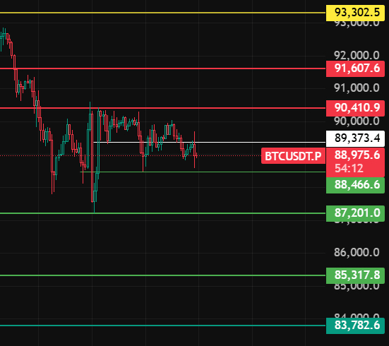 Если ночью не удастся подняться выше 89370, это будет означать, что маленький уровень отскока не имеет силы, снова проверим нижнюю поддержку на уровнях 87200-85320-83800 вблизи этих позиций!#BTC走势分析