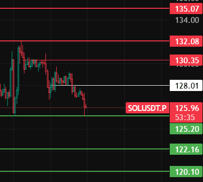 Если ночью не удастся подняться выше 128, это будет означать, что маленький уровень отскока не имеет силы, снова проверим нижнюю поддержку на уровнях 125-122-120 вблизи этих позиций!#solana