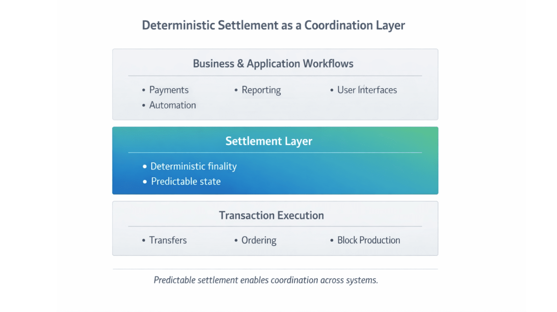 Это различие имеет значение, потому что финансовые рабочие процессы не линейны. Они разветвляются, агрегируются и повторяются. Платеж запускает бухгалтерский учет. Бухгалтерский учет обеспечивает отчетность. Отчетность информирует решения. Когда поведение расчетов последовательно, эти процессы могут быть автоматизированы и объединены с уверенностью. Когда это неясно, команды компенсируют, добавляя правила, проверки и ручной обзор. Со временем эти компенсации становятся реальной стоимостью системы.