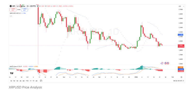 Если XRP удастся удержаться выше своей поддержки на уровне $1.86, пробить параболическую SAR и перевернуть MACD в бычью сторону, можно ожидать движения к $2.16 или даже $2.35. В противном случае, неспособность пробить параболическую SAR может привести к откату обратно к зоне поддержки $1.80.