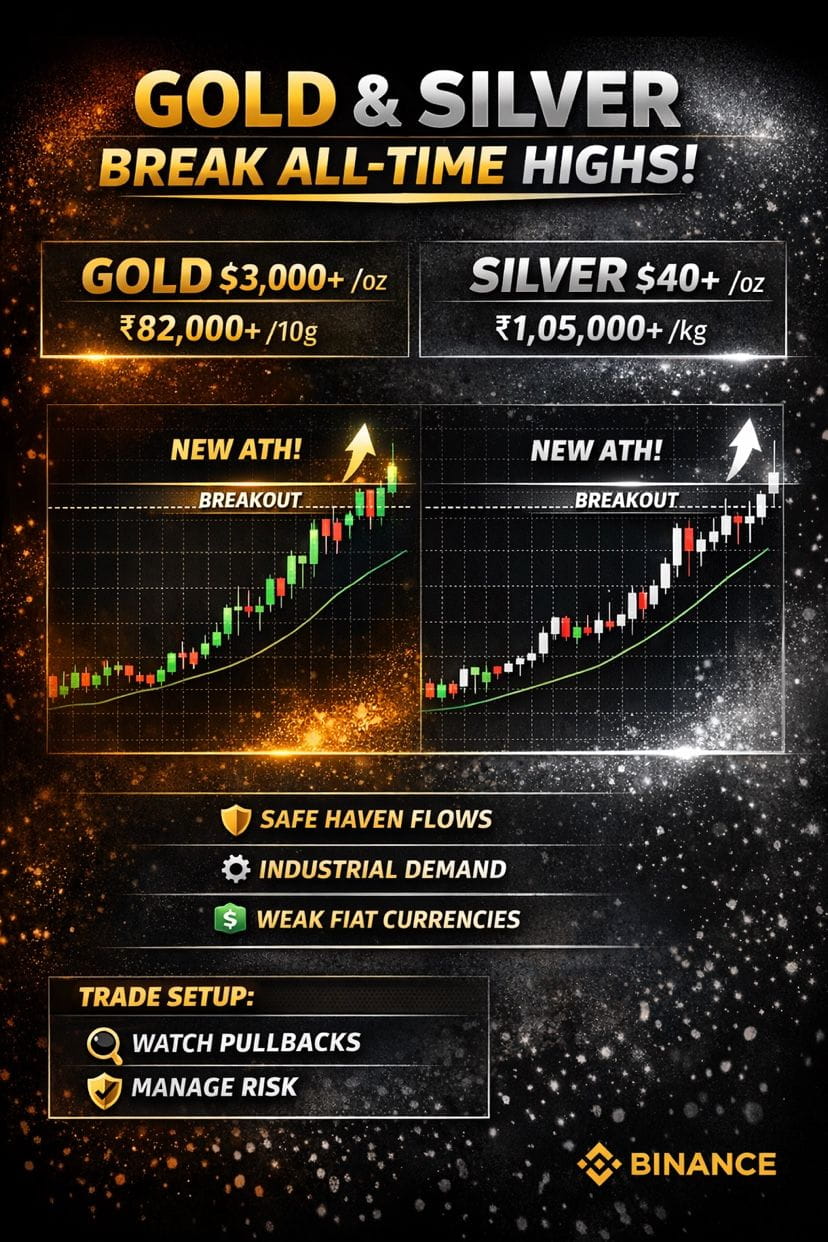 #GOLD ($XAU ) и #Silver ($XAG ) перешли в режим обнаружения цен, печатая новые исторические максимумы 📈