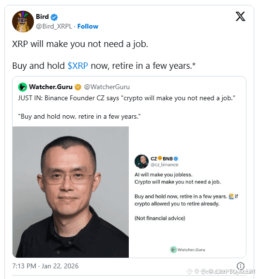 The "Retire Early" sentiment recently caught fire after Ripple enthusiast Bird (@Bird_XRPL) amplified a powerful quote from Binance founder CZ: