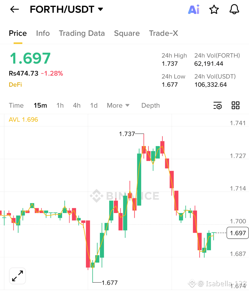 $FORTH just took a small breather after a sharp move, now hovering around the 1.69 zone ⏸️