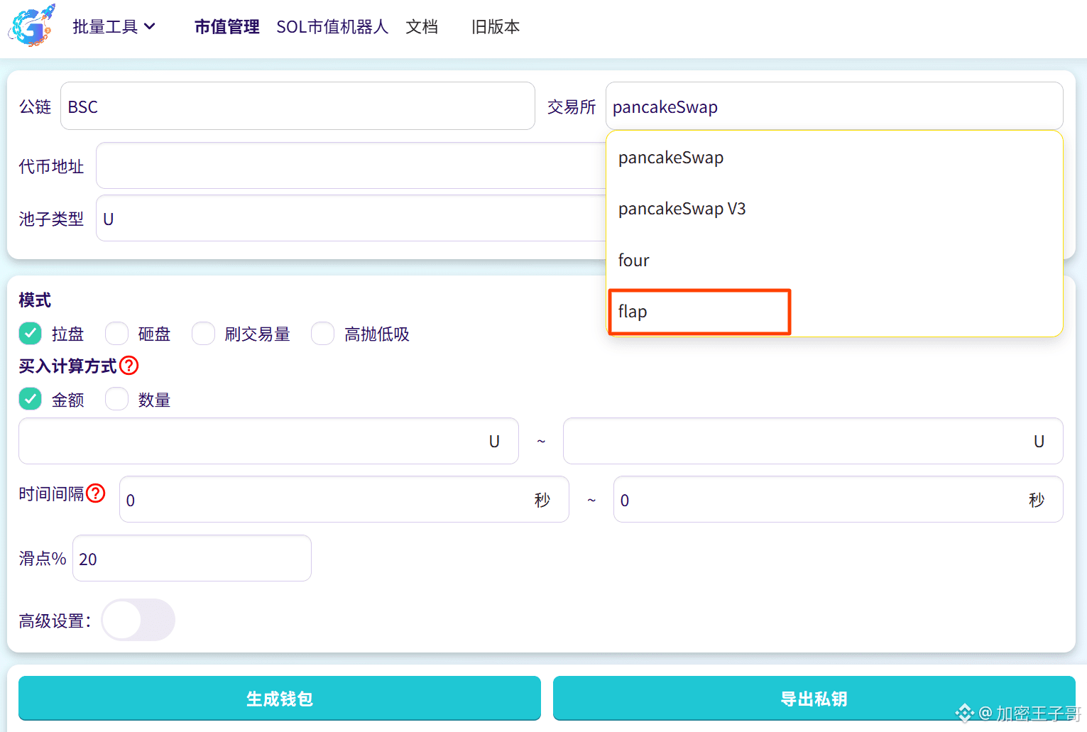 自动化交易策略:支持多种模式,如泵盘(pump)、防滑点交易等,确保交易高效执行。