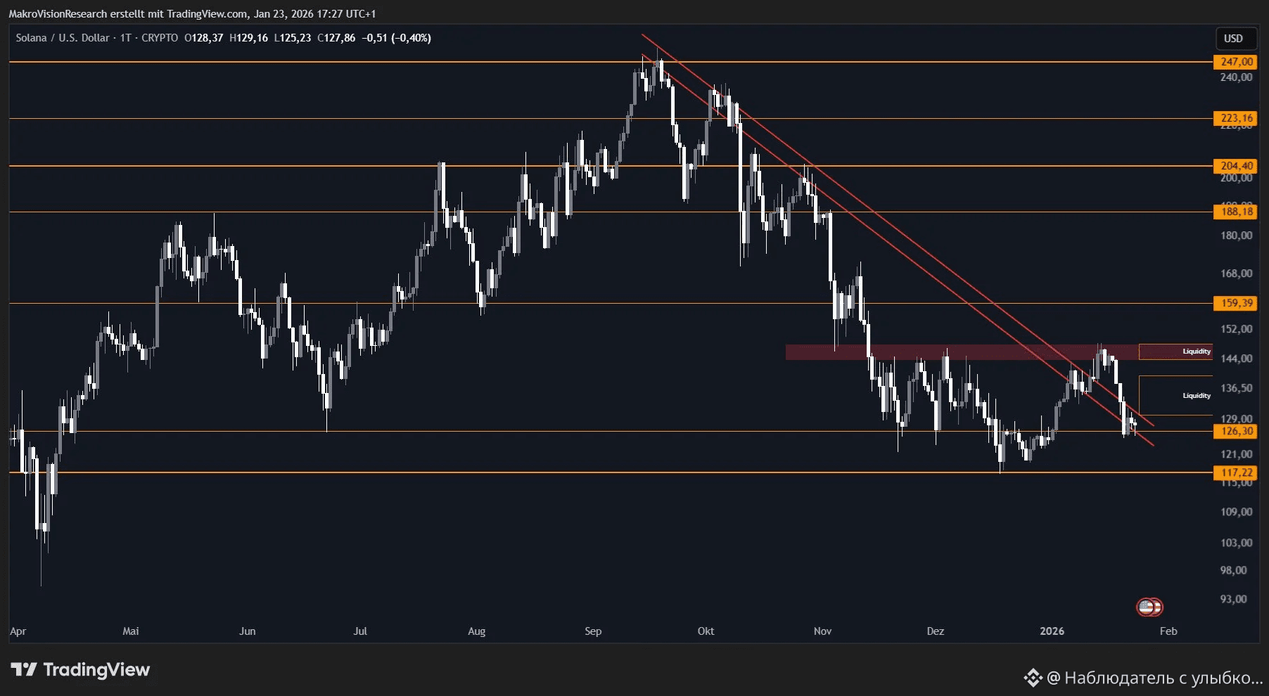 В краткосрочной перспективе SOL, как сообщается, снова торгуется вблизи уровня $126. Эта область в настоящее время является важнейшей краткосрочной поддержкой. MacroVision заявила, что устойчивый перерыв ниже 126 долларов может еще больше ухудшить техническую структуру и привести к откату к недавним минимумам около 117 долларов.