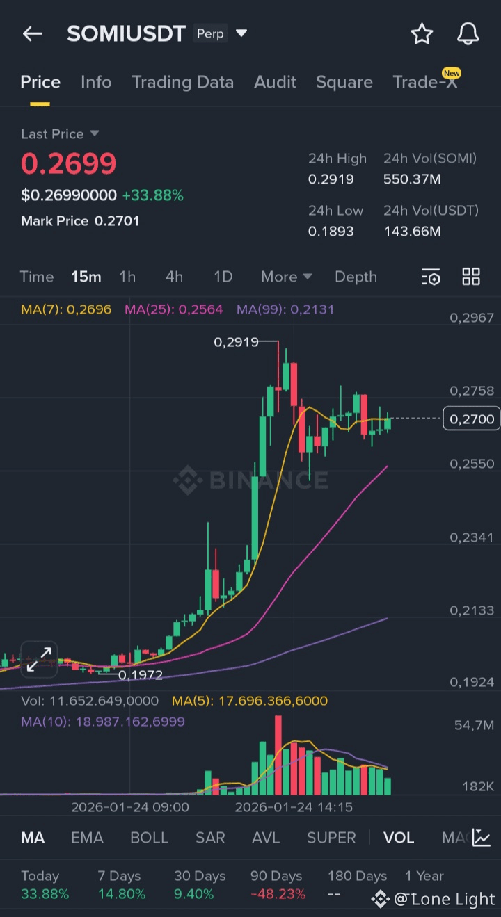 * Sự tăng giá của SOMI đi kèm với khối lượng giao dịch 24 giờ tăng đáng kể và sự gia tăng trong giao dịch phái sinh cũng như lãi suất mở. Điều này cho thấy sự tham gia của nhiều nhà giao dịch hơn và hoạt động thị trường sôi nổi.