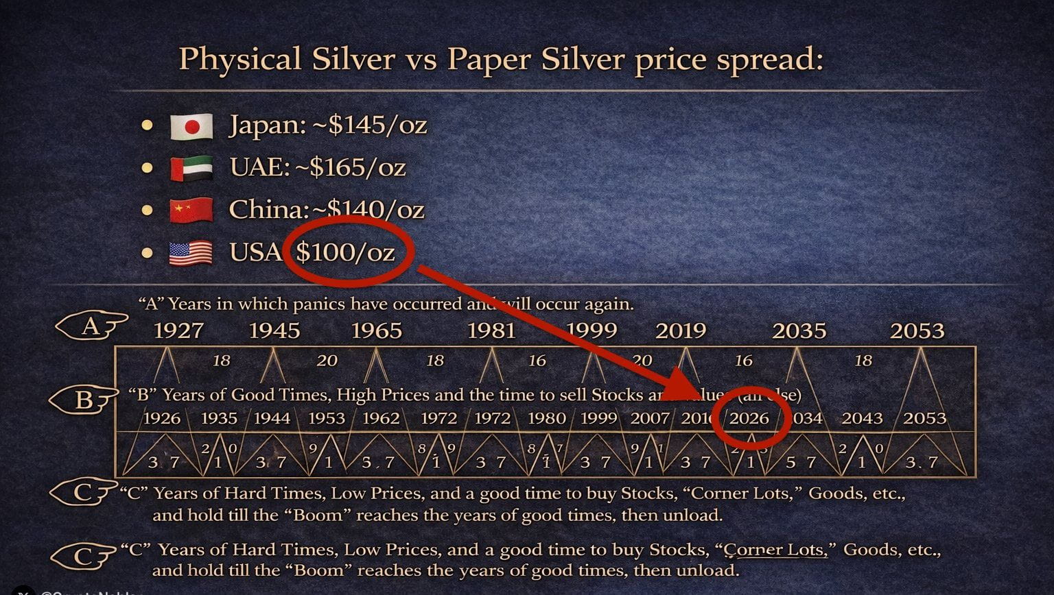 То, что происходит сейчас, - это структурный коллапс на мировом рынке серебра. Объявленная бумажная цена (Paper Price) на таких биржах, как COMEX, больше не отражает реальную цену физического серебра (Physical Silver). Вот шокирующие цифры по географическим регионам: