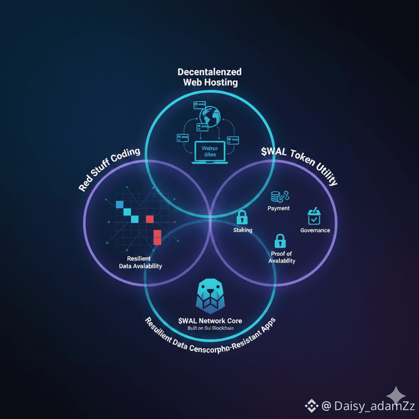 Walrus is not just a storage platform. It is a decentralized infrastructure that combines efficient storage, verifiable data, programmable assets, and support for AI and Web3 applications. Red Stuff erasure coding, verifiable availability, tokenized storage, decentralized web hosting, and high reliability make Walrus a platform that can handle the demands of modern decentralized applications while providing trust and flexibility.