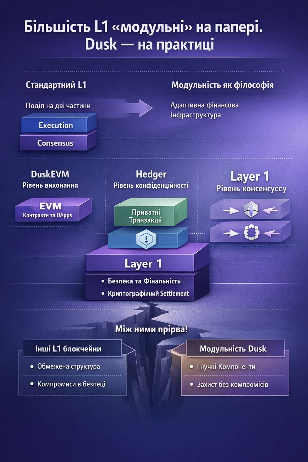 @Dusk подошел к модульности как к архитектурной философии. Не "как разделить блокчейн?", а "как построить финансовую инфраструктуру, которая адаптируется к различным потребностям без компромиссов?"