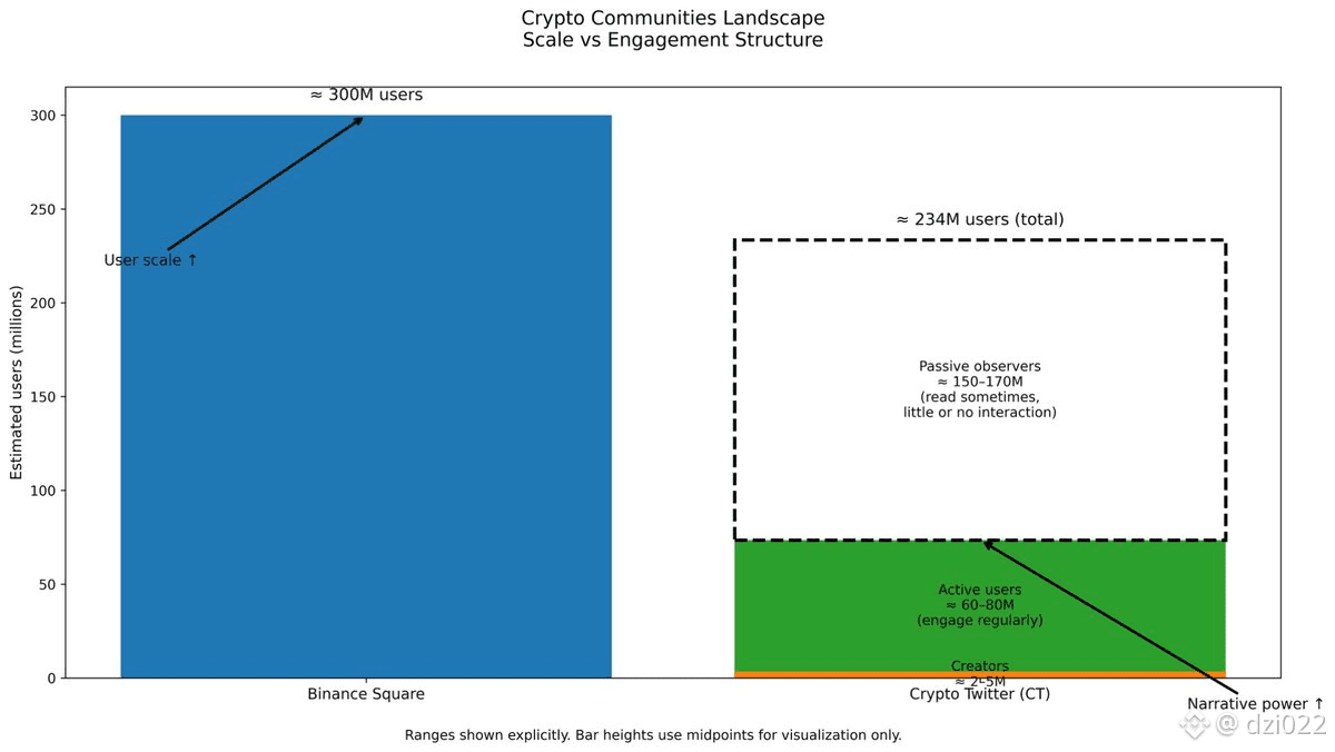 Compare this to Crypto Twitter (CT), which has an estimated maximum theoretical workforce of 234 million users, with only 60-80 million engaging regularly and 2-6 million active creators. While CT remains the primary sphere of influence for crypto culture and sentiment, Square concentrates a larger user base in a completely crypto-native environment designed exclusively around the needs and dynamics specific to cryptocurrency.