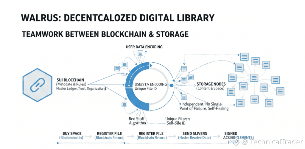When we talk about Walrus we have to look at how it uses the Sui blockchain as its brain. The blockchain handles the metadata and the rules about who gets to store what. It is like a master ledger that ensures every node in the system is doing exactly what it promised to do for you.