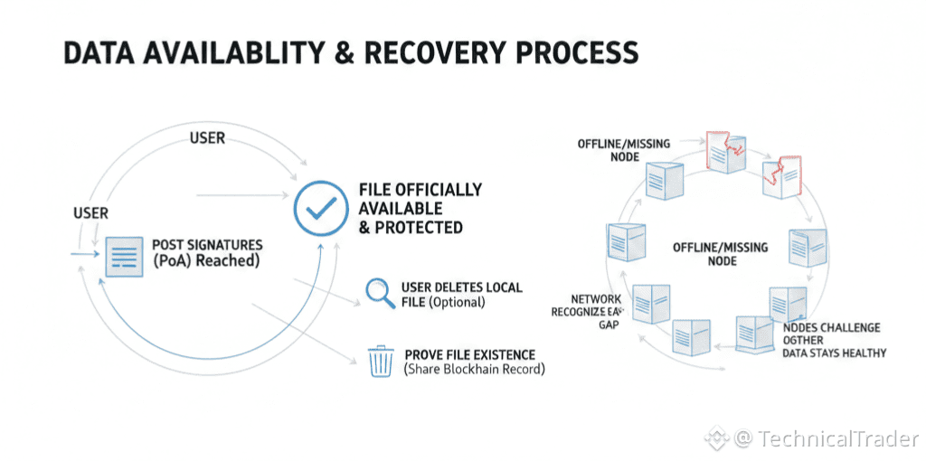 The final big step is called reaching the Point of Availability or PoA. Once you have enough signatures from the nodes you post them back to the blockchain. This tells the whole world and the entire network that your file is now officially available and fully protected.
