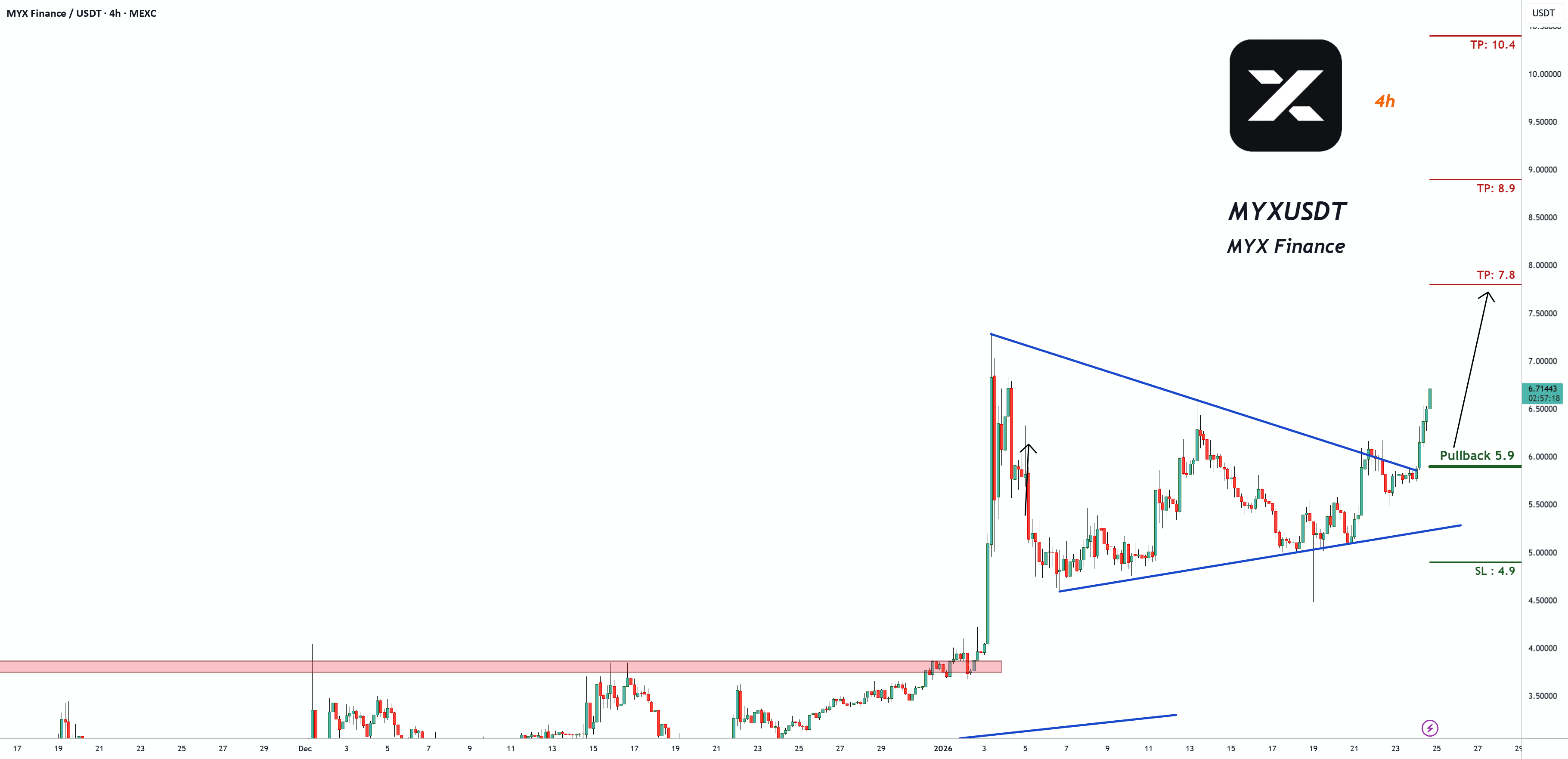 Есть торговый сигнал на покупку в MYXUSDT MYXFinance (4ч)