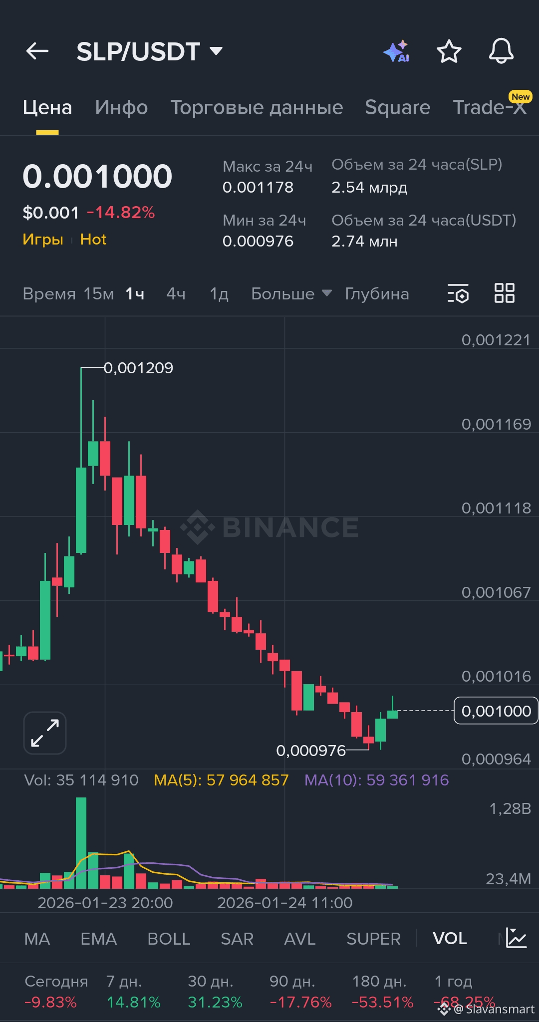 Обратите внимание: SLP исторически потерял более 99% от своего All-Time High и остаётся крайне низко-ликвидным активом.